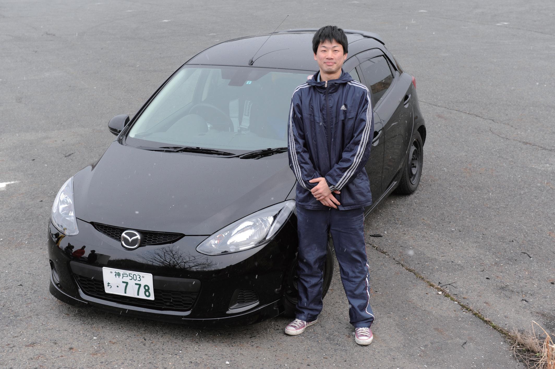 「まだ新人ですから、もちろん、今日はタナボダですよ!。それに僕のデミオは日本一、車高が高い