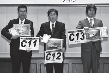 4.KF2表彰。左から2位高柳文哉、優勝倉田拓明、3位平木玲次の各選 手。5.KF2開幕戦はPPスタートの倉田拓明選手が独走態勢に持ち込み、 1年半ぶりの全日本勝利を飾った。