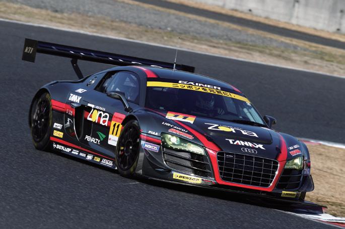注目の一台、アウディR8 LMS Ultraは田中/平中組のドライ ブにより、GT300クラスデビューウィンを達成しました。