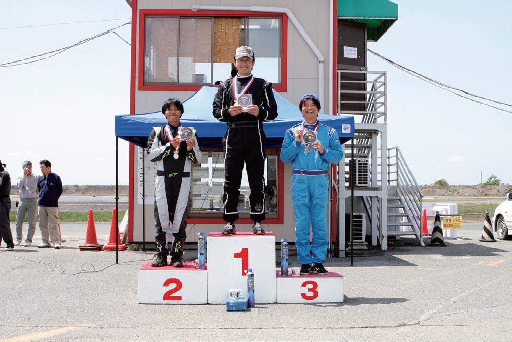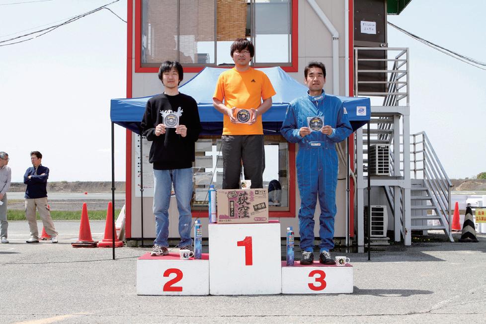 R-FRクラスはMR2を駆る田添健吾選手が優勝。2. 坂田龍雄選手はジュ ニアのオーバーオールタイムでR-4WDクラスを制した。3.R-FF1クラス表 彰台の皆さん。4.R-Kクラス表彰台の皆さん。5.R-FRクラス表彰台の皆さ ん。6.R-FF2クラス表彰台の皆さん。7.N2クラス表彰台の皆さん。8.R-4 WDクラス表彰台の皆さん。9. オープンクラス表彰台の皆さん。10.ビー トを駆る乃一智久選手がR-Kクラス優勝。11.R-FF1クラス優勝は池口良和 選手。12. インテグラ、シビックが集ったR-FF2クラスは飯田慶インテグ ラが僅差で優勝。13. 豊武孝太郎選手はオープンクラスで優勝。14.R-4 WDクラス2位の廣渡義章選手はトップに約0.2秒届かず。15. 友廣拓史 S2000はR-FRクラス2位入賞。16. ダブルエントリーの岡本章宏選手は 乃一選手に次ぐ2位入賞。17.N2クラス中村大地選手は2本めでタイムア R-4WDクラス3位入賞の栗原和 20.N2クラスを制した