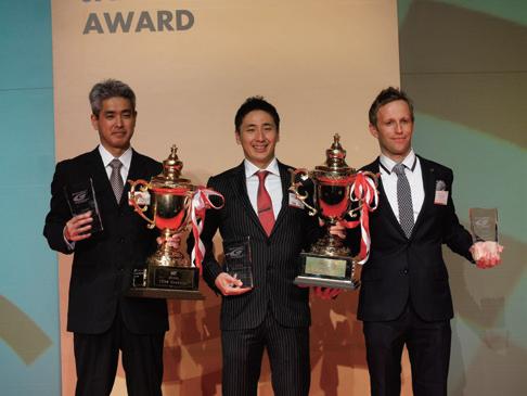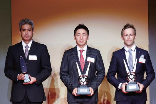 部門PETRONAS TEAM TOM'S、ドラ イバー部門松下信治選手(代理)、エン ジンチューナー部門株式会社トムスの 各受賞者の皆さん。