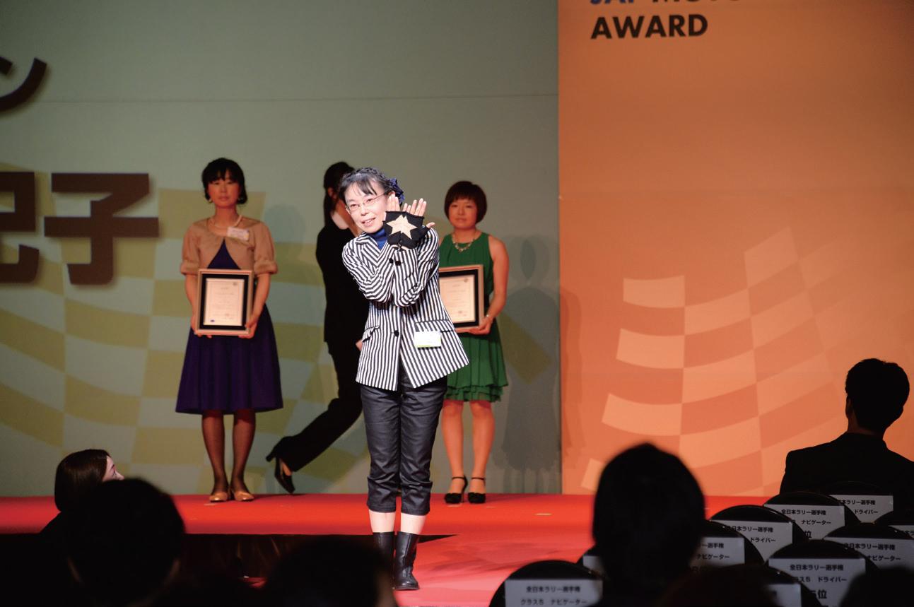 そして懇親会後半では、2013年に引き続き、JAF MATE誌の 公開「あったカー対談」が行われ、今回は清水ミチコさんが登場。 約400名のモータースポーツ関係者が全国から集った式は、終始和 やかな雰囲気の中、幕を閉じた。