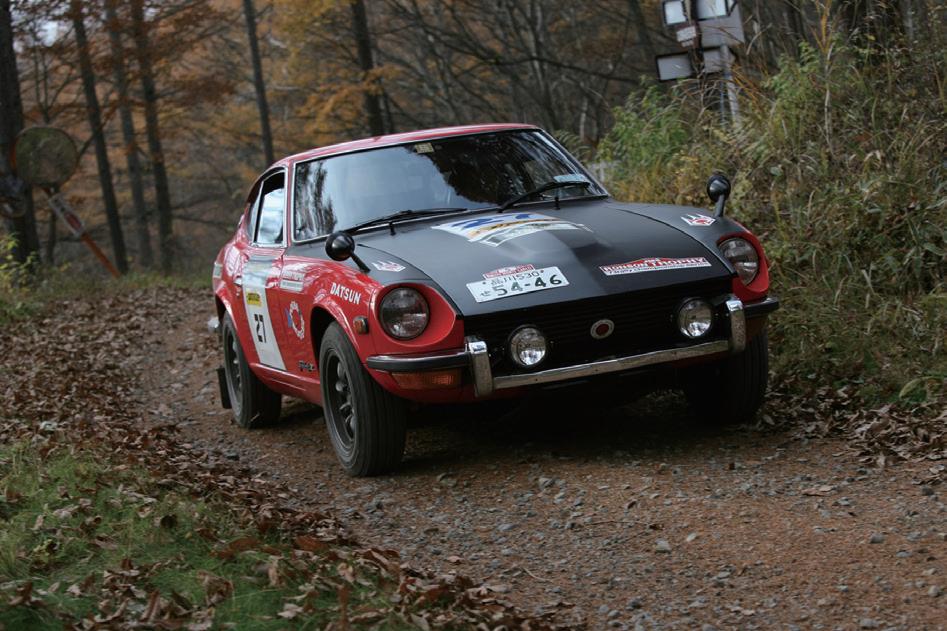 った。だが1点差で松波/草加組が追う接戦 だ。運命の最終21CP、松波/草加組は減点1 に抑えたものの、永瀬/遠藤組はまさかの減 点5。トータル23点に抑えた松波/草加組が、 永瀬/遠藤組に3点差をつけ、劇的な逆転劇 で総合優勝とヒストリッククラス優勝、60歳ク ラス優勝を飾ることとなった。 またレジェンドクラスでは減点28の園田裕 一/芹澤豊組フェアレディZが優勝、これまで 2連覇を飾っていた関根基司/林努組スカイラ インGT-Rが30点で2位。オールドクラスで は減点34で井上/大溝組が優勝を果たした。 またオールドクラス2位の小田切真/齊藤亨、 小久保昌己組ランサーは、デイ2だけならトッ プの15点で上がったが、デイ1で35点を食 らっていたため幻の優勝となってしまった。 今大会は前大会よりも秒計時区間が大幅に 増え、よりシビアな計算が必要になるラリーだ ったが、優勝減点だけなら1CPにつき平均1 秒強。これはラリコンでも難しい成績だ。さす