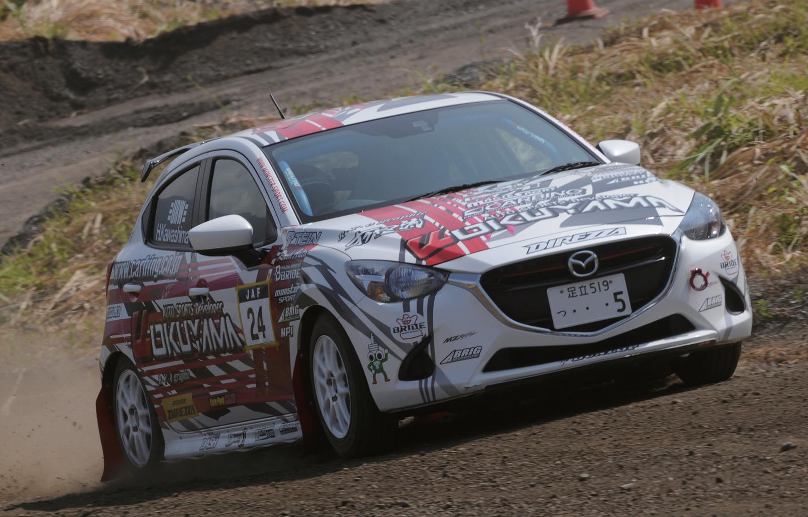 上がり、1分57秒台の争いに。そこでターゲットタ イムを1分56秒台に引き上げたのは松栄選手で、 続く入澤選手が横っ飛びでゴールする激しい走り でコンマ3秒逆転した。このまま優勝かと思わせ たところで柿澤選手が中間ベストをマーク。 フィニッシュタイムは何と2位に1秒差をつけた 1分55秒29を叩き出した。残るシード勢は奮わず、 シリーズ3位で挑んだ山川弘介選手もゴール直前 のパイロンタッチで沈んだため、柿澤選手が1年 ぶりの嬉しい今季初勝利を獲得した。「デミオから 乗り換えて昨年は何をやってもダメでしたが、今