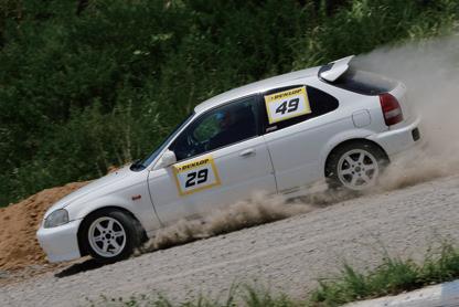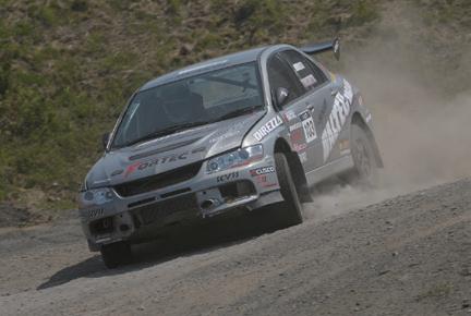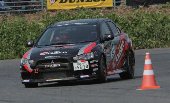 天気は快晴。うだる暑さの中で高低差のある新 コースの慣熟歩行が行われ、コース攻略もタイヤ 選択も手探りなまま第1ヒートがスタートした。話 題の新コースオープンということで第4戦には多く の全日本選手も参戦した。中でも全日本N2クラス を戦う星盛政選手は本番車のランサーを持ち込み、 第2ヒートで気合の走りを見せて優勝を飾った。