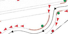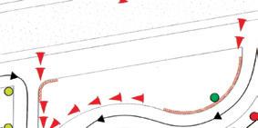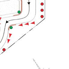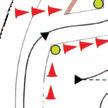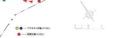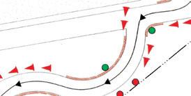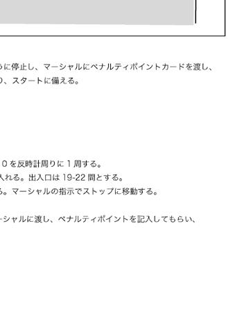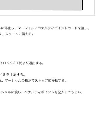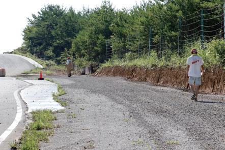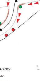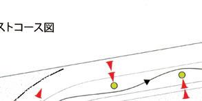 後半は全てがダートで、大きな左ターンを回って“タ コツボ”と呼ばれる高低差のある東コース連絡路に入 る。最下部まで駆け下って1本パイロンをターンして 上段の大きなターンに戻る。その後は再び西コースの 舗装に戻り、かの新井敏弘選手も転倒したショートカ ットを下って、規制パイロンの不通過に気をつけなが らホームストレートに入ってフィニッシュする。