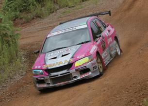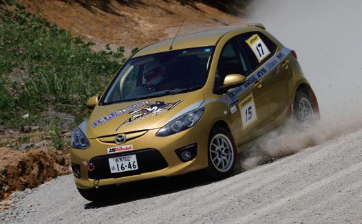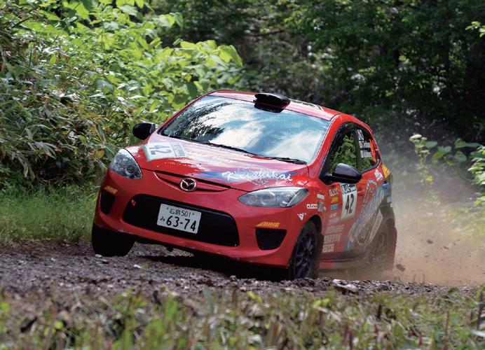 「RACラリーでも公園セクショ ンではミックスが当たり前だっ たからこういう路面は面白いと 思うよ」。WRCにも参戦した元 全日本ラリースト、藤田哲也選 手が復活の勝利を獲得。