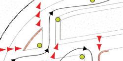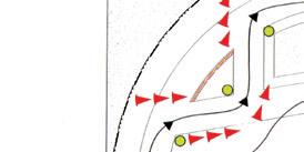 前半セクションは、スタート直後に舗装で右ターン してそのままアウト側のダートに入り、西コース頂上 にダートのショートカット路で上がる。そこからダー トの右回りコークスクリューで下り、再び左回りで上 って、最上段のストレート部に設けられた速度抑制の シケインを通過してから、緩い左コーナーでバックス トレートに入る。ここはターボ4駆勢は4速に入る速 度域でややバンピーな路面をクリアしつつ、ハイスピ ードな右コーナーを経て後半セクションに入る。