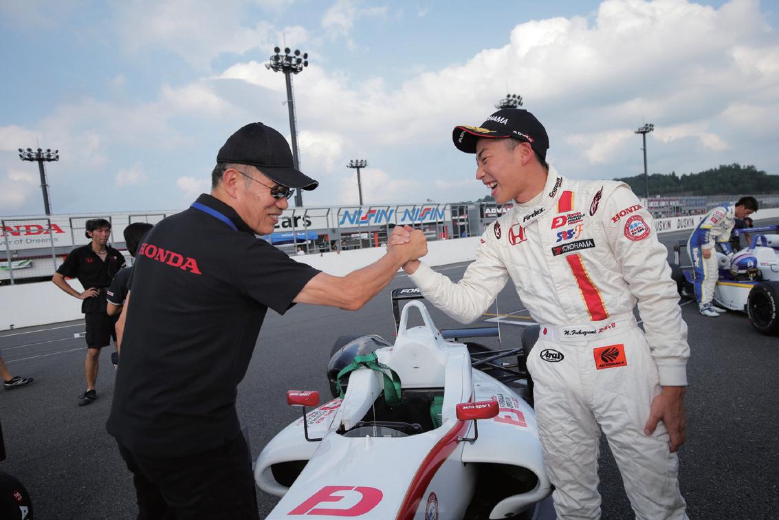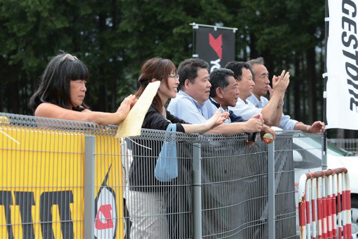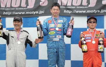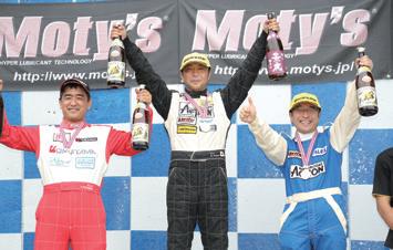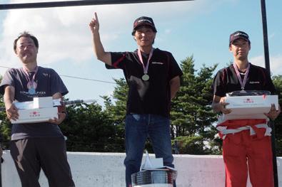まず動いたのが永井選手で、5周めに3番手に浮 上。8周めのヘアピンでは松島選手に襲いかかった MUSASHI選手が、痛恨のスピンを喫してしまう。 これで視界の開けた永井選手がトップを獲りにい くも、10周めのアトウッドコーナーで、やはりスピ ンして遅れを取る。最後は小山選手に8秒差で逃 げ切った松島選手は、「スタートで前に出られたの が大きいですね。勝つ時にはいつもラッキーなん ですよ」と大喜びだった。