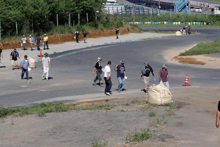 この新ダートコースの面白いところは、サーキット のエスケープゾーンをつないでダートコースにしてし まおうという発想だ。今回のレイアウトは、全日本ジ ムカーナでも使用したピットレーンからスタートする、 西コースを横断しながらのミックス路面だ。