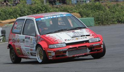 ウイナーが分散してタイトル争いが混沌として いるN1500&PN1クラス。第1ヒートで唯一2分 を切ってきたのは昨年復活したポイントリーダー入 澤勇選手だ。中間ベストは池田裕和選手が獲得し たものの1分59秒29でトップタイムを刻み、全日 本ドライバーの面目躍如となった。2 位には松栄吉彦選手、3位は柿澤廣 幸選手と、上位3台にZC31Sスイ フトが並んだ。