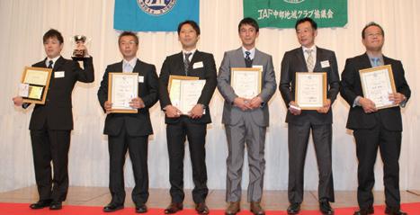 から2位三宅洋三、1位小山 裕二、3位中村優介の3選 手。12. 中村優介選手はCク ラスを制した。13.B4を制し た小山裕二選手は「今年は全 勝します!」と宣言。