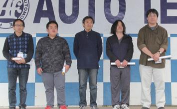 地区戦クラスはRWD クラスから始まったが、 昨年のチャンピオンが不 在ということで各選手、 大ハッスル。「今日は絶 対勝ちます」と豪語した 清野タカシ選手は、ATの 福西貴志選手との“たか し対決”となったが、「ア クセルを踏みまくった」と 振り返った清野選手が優 勝をさらった。PN.S1500 クラスは「マシンはばっち り仕上げてきました」とい う馬場基選手が、勝つ気 十分で挑んできた。深谷