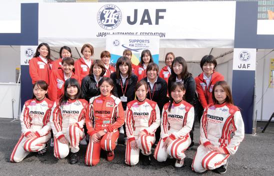 FIAとJAFにより発足され井原慶子選手の主導 で昨年から始まった「マツダ・ウィメンインモータ ースポーツプロジェクト」。その二期生が発表さ れ、JAFブースではお揃いのレーシングスーツも 披露された。今年は新たに鍼灸師や調理師など、 ドライバー以外の立場で関わるメンバーを研究 枠として採用したことが大きな特徴だ。