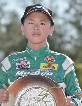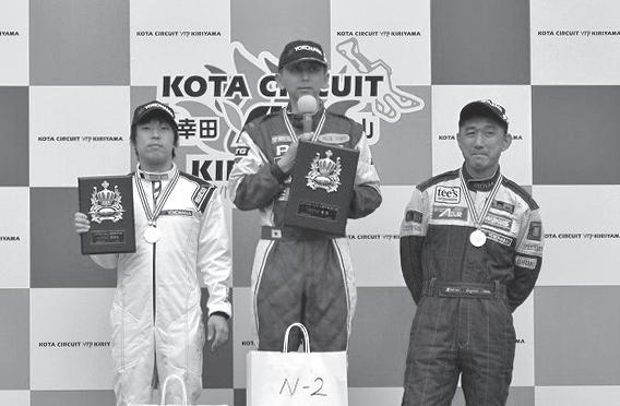 ジュニアカートFP-Jr/12.16. 序盤、 順位を落とすも冷静なレース運びで逆転 優勝の清水英志郎選手。13.3位入賞の西 山魁選手。14. 左から2位松崎、優勝清 水、3位西山の3選手。15. 松崎清悟選手 は2位に入賞。