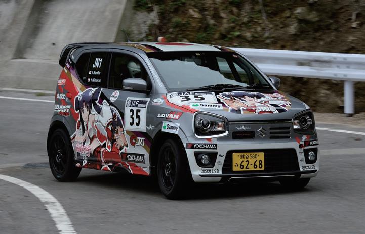 競技はPN1クラスからスタート。3台の新型デミ オも参戦し、スイフト勢にどこまで迫れるかが気に なるところだが、暫定トップに立ったのは今回唯 一のフィットを駆る橋本恵太選手。2番手に着ける ディフェンディングチャンピオン、スイフトの大脇 理選手に1秒以上の差をつけ第1ヒートを終える。