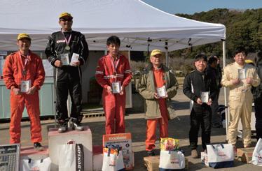 11.ラリーにも参戦する近藤潔スイフトは S1で 2 位入賞。12.Dクラス江川博選手は 2 位に入って復活 の狼煙を上げた。13.N1佐藤豊選手はヒート1の順位を守って2 位でフィニッシュ。14.タイトル防衛 に臨む S3 山本厚選手。ヒート2、タイムを上げるも2 位にとどまった。15. 改造車ドライバーとして知ら れる浜田隆行選手は今年もナンバー付車両で参戦。初戦を2 位で終えた。16.S2 南義則選手はヒート 1の首位を守れず悔しい 2 位。17.S1は王者永田誠選手が敗れる波乱の展開に。山下雅博選手がデミ オのデビューウィンを飾った。18.N1クラス入賞の皆さん。19.S1クラス入賞の皆さん。20.S2クラス 入賞の皆さん。21.S3クラス入賞の皆さん。22.Cクラス入賞の皆さん。23.Dクラス入賞の皆さん。