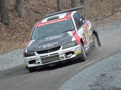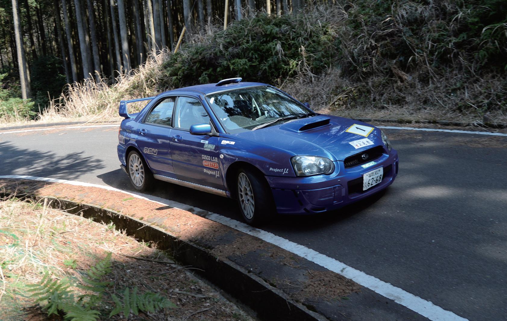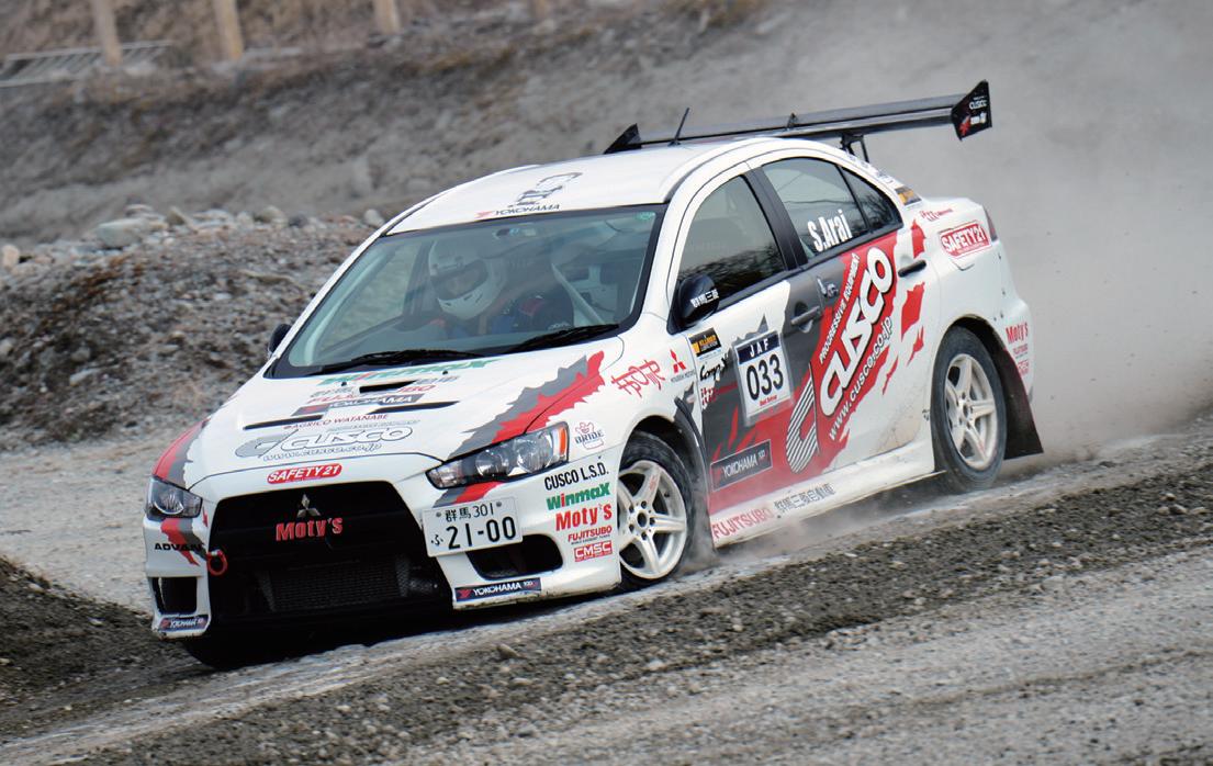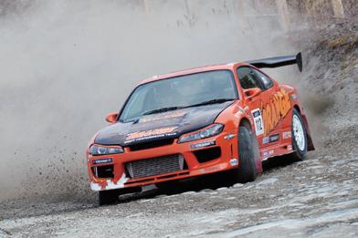 ら走った」と言いながらも、4連覇に挑む城戸組はス バル・インプレッサでSS1、SS2でベストタイムを マーク。しかし、SS3では三菱ランサーを駆る津野 裕宣/白土辰美組が渾身のアタックでベストタイ ムを叩き出し、ファーストセクションを制覇する。