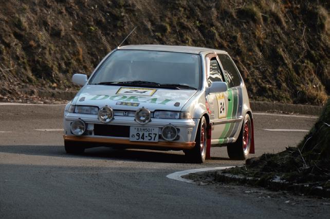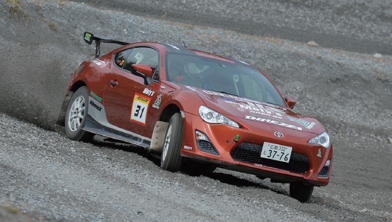 ス。それでも、すぐに復帰した黒原/久木野組が 逃げ切り、今季初優勝を獲得した。「最初の3本は ペースが上がらなかったんですが、第2ステージ になってリズムを取り戻せました」と振り返ったホ ンダ・インテグラを駆る新開雅寛/山口達也組が 2位入賞を果たし、同じくインテグラを駆る松本翔 平/平島宏季組が3位入賞と、このクラスはラジ アルタイヤ組が表彰台を独占した。