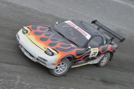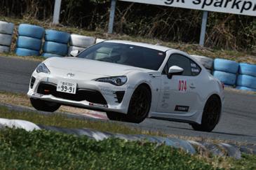 参加14台と今年も人気を集めるPN3クラスも 25秒台の攻防となった。昨年まで全日本にRX-7 で参戦していた上本昌彦選手が86にチェンジして 参戦、全日本優勝経験者の貫禄を見せたが、26秒 台にとどまり、3番手に終わった。勝ったのは前夜 遅くまでカラーリングに奔走していたという西野耕