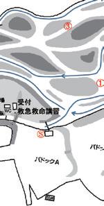い選手、クルーを想定した救助」 を学ぶ訓練が行われた。さらに訓 練用の器具を使用した胸骨圧迫に よる心配蘇生法の訓練も併せて行 われた。オフィシャル参加者は昼 休みに同様の訓練を体験した。