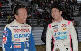 が、昨年から復帰の岡山の元気印ドライバー、川 戸惟寛選手が「ACDが不調」と言いながらコンマ3 秒差で2位につける。川戸選手はヒート2、1分43 秒55まで詰めて首位に立つが、最後の最後で加 藤選手が42秒台に入れて打っちゃり、幸先の良い スタートを切った。