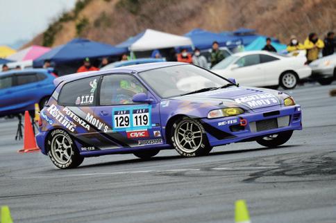 のインテグラをドライブしていたチャンピオン西井 将宏選手やインテグラマイスターとして知られる 榎本利弘選手が移籍してきた。優勝候補筆頭は迎 え撃つ、こちらもインテマイスターの大須賀義外 選手。ヒート1こそ榎本選手にベストを譲るも、「2 本めはタイヤも食ってくれたので1秒はタイムアッ プできると思った」とプッシュ。しかし何とドライ ブシャフトが破損、ノータイムに終わってしまう。 ヒート1のタイムで逃げ切った榎本選手は「まさ か大須賀さんに勝てるとは思いませんでした。去 年後半、足回りにハマったのでSA化と平行して やってきたんですが、ちょっと形になってきたかな という感じです」。大須賀選手はヒート1のタイム が残り、加田充選手に続く3位。上位3台の差は 僅か0.152秒。今年は熱いバトルが続きそうだ。
