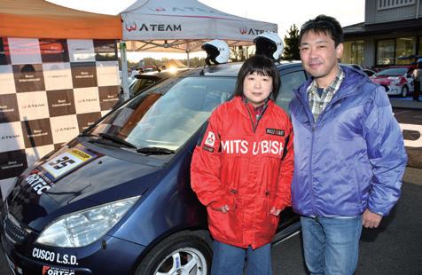 ベテランの丸山保幸ナビと組んだ太田直 美選手は旧姓、倉持。全日本ダートラで唯 一女性として優勝を果たした元凄腕レディ スだ。「結婚してからは(ご主人は全日本ダ ートラドライバーの太田延昭選手)専業主 婦でしたし、ライセンスも切っていたので、 17 年ぶりに取り直して出ました。昔は桜井 幸彦さんのチームにいたんですけどラリー は良く分からないままでしたね。ペースノ ートも初めてだし、数字を言われても分か らないので『行ける』とか『きつい』とかって いう表現でした(笑)。タイムも全然ダメだ ったけど、楽しかったですよ」