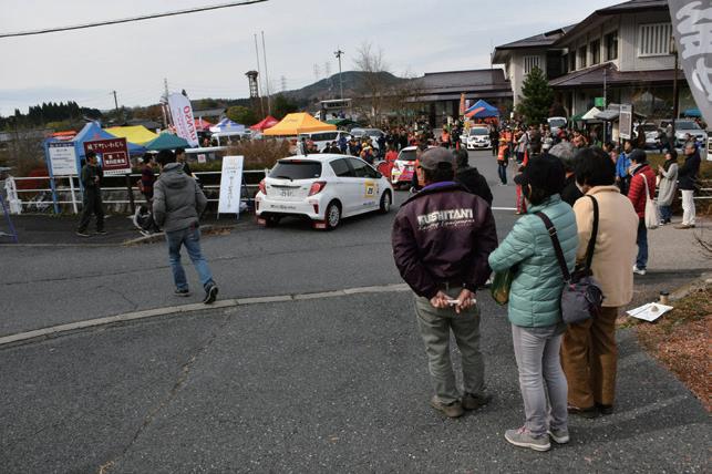 1.~4. 今回のラリーは江戸時代の街並みの面影を残す恵那市岩村地区のメインストリートをセレモニアルスタートで出発する形で始 まった。HQ が置かれた岩村振興事務所庁舎ではライブビューイングも行われ、ラリーの臨場感を味わえる演出も用意されるなど、 ギャラリーへのサービスも好評を博した。サービス会場にも多くの人々が訪れ、声援を送っていた。