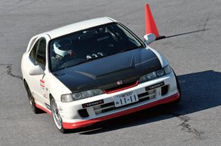 ジムカーナ歴 40 年の加藤政幸選手が レクサス IS350 で参加。「S2000 でジ ムカーナをやってますが、今回は足踏 み式の IS で試しに参加しました。この 新しい試みは価値があると思います。 ボクが始めた当時は S54B スカイライ ン等で走ってましたが、当時はサイド なんて使えませんでしたし、練習する 場所もありませんでしたからね」。