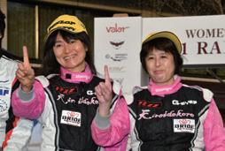 また、L1-1クラスでは群馬県戦などで男性ドライバー を相手に優勝を飾ることもあるベテラン栗原智子/山田 真記子組シティが、「一応順調でしたが、このクルマ小さ いのでギヤ選択を間違えるとあっという間に置いていかれ るので最後まで気を抜かずに走りました」と快走。毛受広 子/赤木弥生組ヴィッツに6秒差をつけて優勝を飾った。