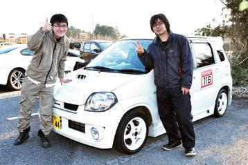 中学時代からの友達である多田司選 手と藤崎優寿選手が Kei ワークスで 参戦。「2016 年の君津オートテスト で初めて競技を体験して、自分らで も出られそうな大会がある事を知っ て参加しました。これまで速いクル マに乗ってきたんですが、腕を磨く 必要性を感じてオートテストやジム カーナでテクニックを学びます」。