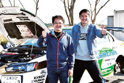 中学時代にクルマに触れ、だいぶ早いうち からジムカーナ走行に目覚めたという奥井優 介選手(右)。ようやく免許を取得して、父・ 奥井毅選手とS4 に参戦した。「幼い頃から ゲームをやったり、父の横に乗ってたので 『いずれは俺もやるな』と感じて、早くやりた かったんですよね。父のエボⅩしか乗ったことがなくて、最初は見よう見まねでしたが、 今では少し考えて運転できるようになってきました。2018 年は関東地区戦に出る予定で すが、免許費用も父から借りたままなので、もう少しお世話になります(笑)」。