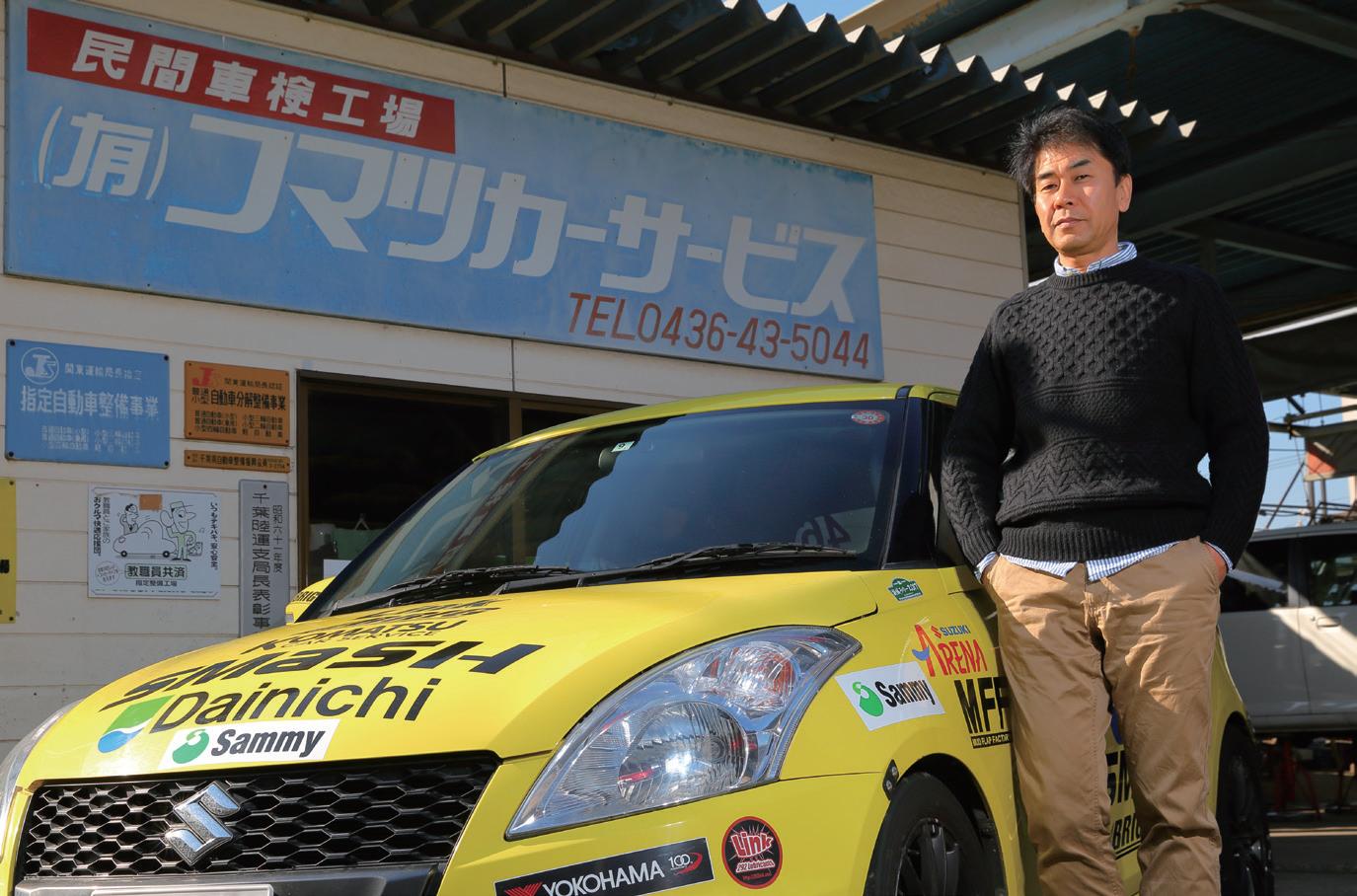 た松本浩選手。「草ジムカーナを 10 年以上やってますが、5ドアハッチバ
