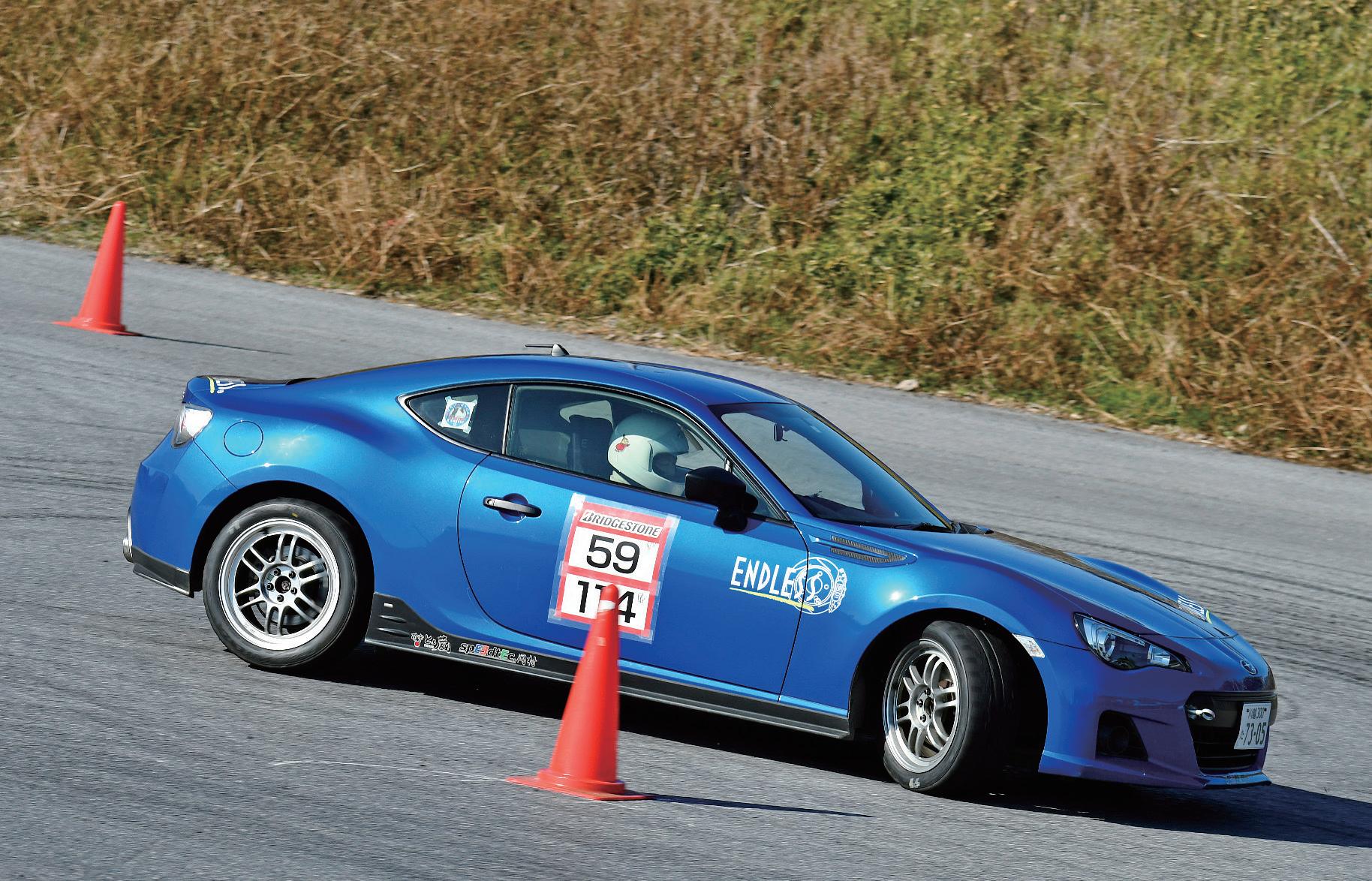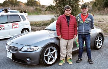 視力に障害を抱えて通常のジムカー ナ参戦を諦める事になった西上伸二 選手が、講師役のベテラン改造車乗 り・もあ選手と AT 車の BMW Z4 で参 戦。「今回のコース設定は十分楽しめ ました。Z4 は電子制御をカットすると フツーのタイヤでは手に負えない動 きになるので(笑)、現在は制御を効 かせてグリップ走行に徹してます」。