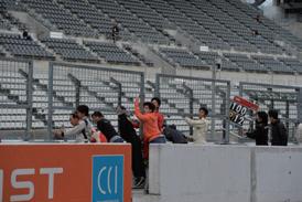 競技終了後に行われる全日本ジムカーナ選手会の同乗走 行も、お昼の抽選会で当選した観客が同乗できる仕組み。