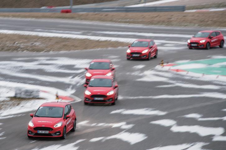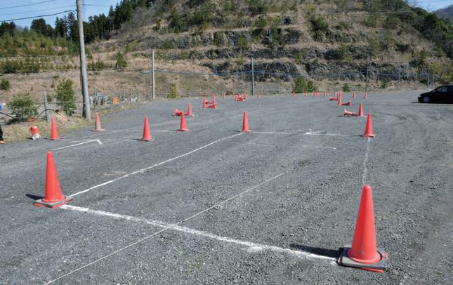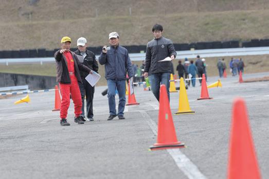 者は2種類のコースを代わる代わる走るこ とができた。広大な敷地をフル活用したレ イアウトで、パイロンスラロームや8の字 ターン、1本パイロンまたは3本パイロン のフルターンに加えて、高速セクショ