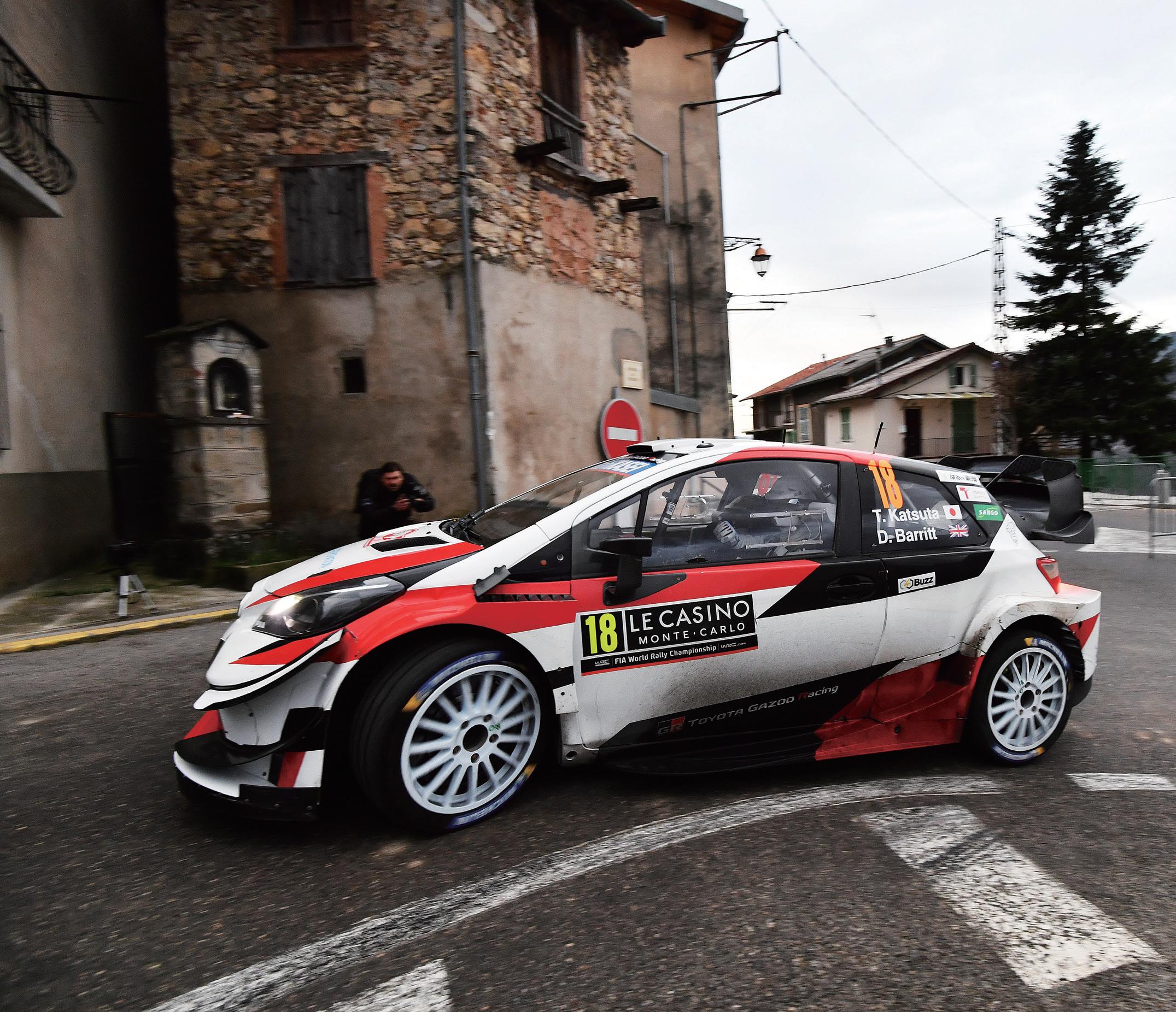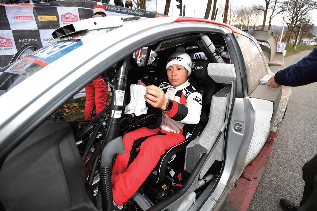 「インフォメーションとクルマを信じ切れないまま走 っていたら、ガードレールに当たってしまいました。な ので、そこからは気持ちを切り替えて、完走だけを考 えて走ることにしました」と厳しい表情を見せる。 数台とはいえ、格下となるR5車両の先行を許してい ただけに、彼にとってこのリザルトは不本意だったに 違いない。事実、デイ1については「不安と悔しさしか なかった」と暗い表情で語っていた。 しかし、ドライターマックとなった1月24日のデイ 2ではペースアップ。「アイスノートクルーの情報と実 際のコンディションがズレていたので、必要以上にペ ースを落としました」と語りながらも、安定した走りを 披露して総合7位に浮上してみせた。 25日のデイ3では、オープニングのSS9でスノーバ ンクにヒット。ラジエターに雪が詰まって3分を失っ ミ・マキネン代表は「タカ(貴元選手)にとって、2020年 のプログラムは大きなステップとなる。今後のために もWRカーで多くの経験を積んでほしい」と期待を込め る。勝田貴元選手も「2021年への経験のためのプログ ラムなので、リスクマネジメントをしながら戦ってい きたい」と意気込みを語っていた。 新プログラムの緒戦は、1月23日~26日にモナコ公 国で開催されたWRC開幕戦のラリー・モンテカルロ。 雪と氷に覆われた特殊なターマックで、勝田貴元選手 の新たなチャレンジが幕を開けた。 2019年大会にフォード・フィエスタR5で参戦して いることから、彼にとっては2度目の参戦だったが、 「WRカーはR5マシンと違ってスピードが高いので、 ペースノートの情報量を減らしました」とのこと。 さらに「今年の8戦はイベントによってレベルが変わ ると思います。スウェーデンやフィンランドなどは経 験値が多いのでチャレンジできると思います。でも、 モナコについては何が起こるか分からない。頭を使い ながら最後まで走りたい」と慎重な姿勢を見せた。 加えて、彼がドライブする4台目のヤリスWRCは 2019年スペックであるほか、ペースノートについて も、マニュファクチャラー登録ではない彼は、ワーク スドライバーに対して、アイスノートクルーが走行で きる出走時刻が早く、インフォメーションと実際の路 面状況に大きなギャップがあった。そのため、デイ1 のナイトステージから苦戦を強いられることになった。 SS1こそ9番手タイムをマークしてみせたが、SS2で は14番手に低迷。デイ1総合では12位と出遅れる。 開幕戦モンテカルロは”路面情報”との戦い 近年のモンテカルロは積雪することは限定的で、ウェットパッチや アイスパッチが交互に出現するターマックラリーとなっている。そ のためタイヤ選択は難しく、直前の路面状況を伝えるノートクルー の情報如何によっては、攻めることすら困難な状況となっている。 12