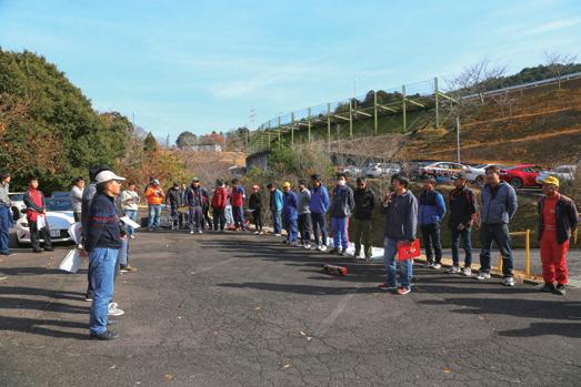MRC中部ジムカーナ部会で は、モータースポーツ未経験者 や初心者を対象としたジムカー ナレッスンを開催しており、ジムカーナ部 会のレッスン担当委員の前島孝光選手らが 中心となって、近年では中部エリアにある 複数のコースを巡るツアー形式で行われて いる。 2019年は富山県のイオックスアローザ スポーツランドや滋賀県の奥伊吹モーター パーク、愛知県のモーターランド三河AB コース及びCコースで開催され、2019シー ズン最後のレッスンとして、12月21日にキ ョウセイドライバーランドで開催された。 過去最多となる47名の参加者を集めた 今回のレッスンだが、参加者は競技未経験 者やジムカーナ初心者及び中級者、そして オートテストをメインに参加する選手と 様々。また、参加者の動機も、サイドター ンなどの競技走行ならではのテクニックを 試してみたい人や、さらなるステップアッ プを図りたいジムカーナドライバーなどな ど千差万別だった。 こうした様々なニーズに応えるため、前 島選手を始めとしたレッスン担当者らは「こ のレッスンでは参加者3名に講師1名とい う少数精鋭のグループ講義を行うようにし ています。ですから、今回はジムカーナド ライバーなどに協力を得て16名の講師を用 J フォト/滝井宏之 レポート/山中知之、JAFスポーツ編集部 JMRC中部ジムカーナレッスンツアー2019 in キョウセイ 日程:2019年12月21日(土) 会場:キョウセイドライバーランド(愛知県岡崎市) 担当:JMRC中部ジムカーナ部会 中部のジムカーナ選手16名が講師として協力。 参加者3名に対して1名の講師が付いた。 ブリーフィングでは参加者に旗信号を説明。約 15名のオフィシャルが運営に臨んだ。 未経験者や初心者だけでなくエントリージム カーナに参戦する中級ドライバーも参戦。 JMRC中部のレッスンツアー2019年最後の舞 台は愛知県のキョウセイドライバーランド。 64