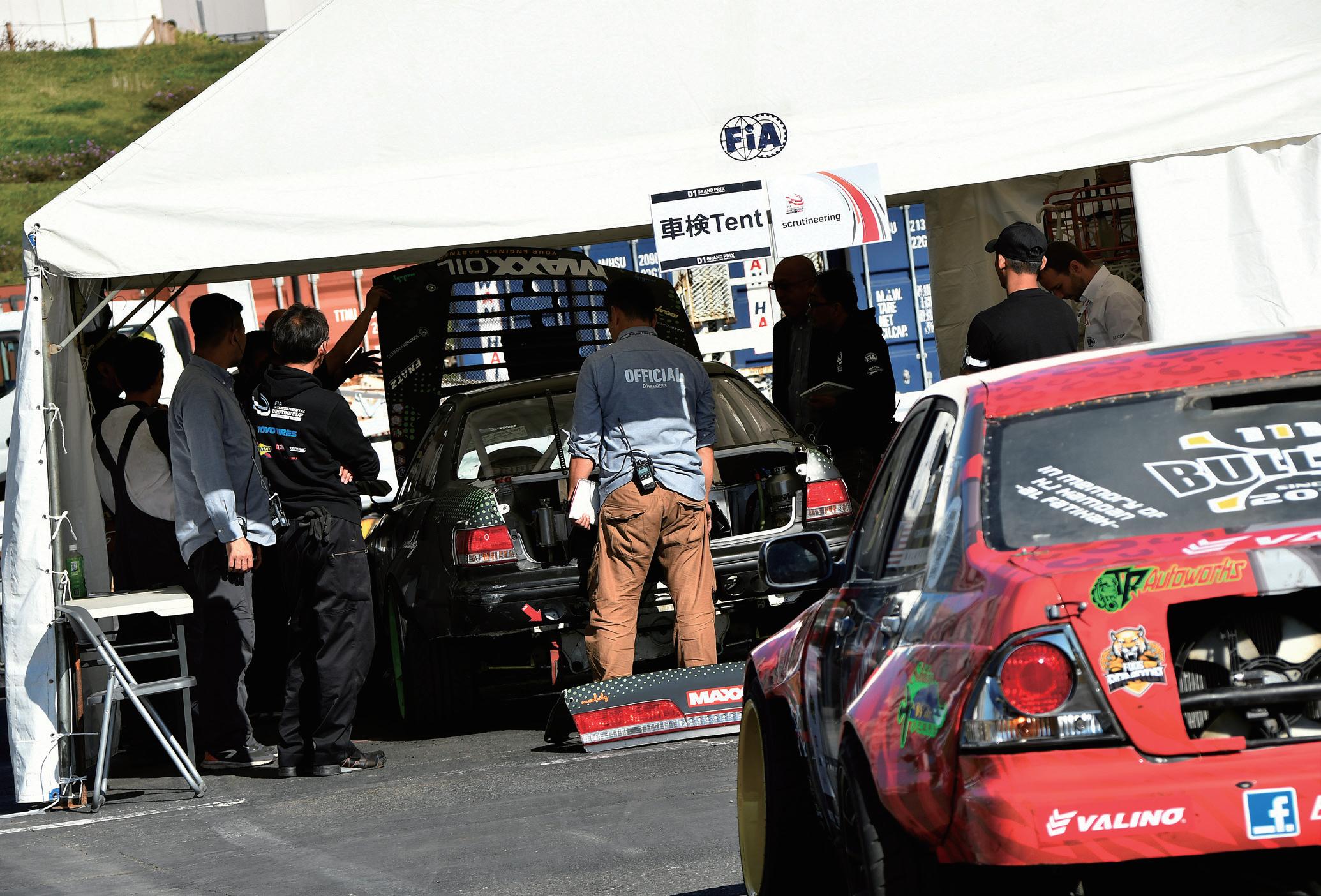 NOS(亜酸化窒素ガス噴射システム)の使用が許可さ れている点も見逃してはならない。 一方で、サスペンションの改造については、すでに 各国で地位を確立しているドリフトシリーズの中間点 に落とし込まれたような形となった。