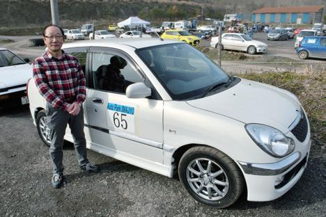 三中淳史選手は、オートテスト初参加。「皆さん の走りを見たら、こなれた感じなので、途中で帰 りたくなりましたが(笑)、2本めは楽しく走れま した。砂利を走るのは面白いですね。次は滑ら せて走りたいですね」。