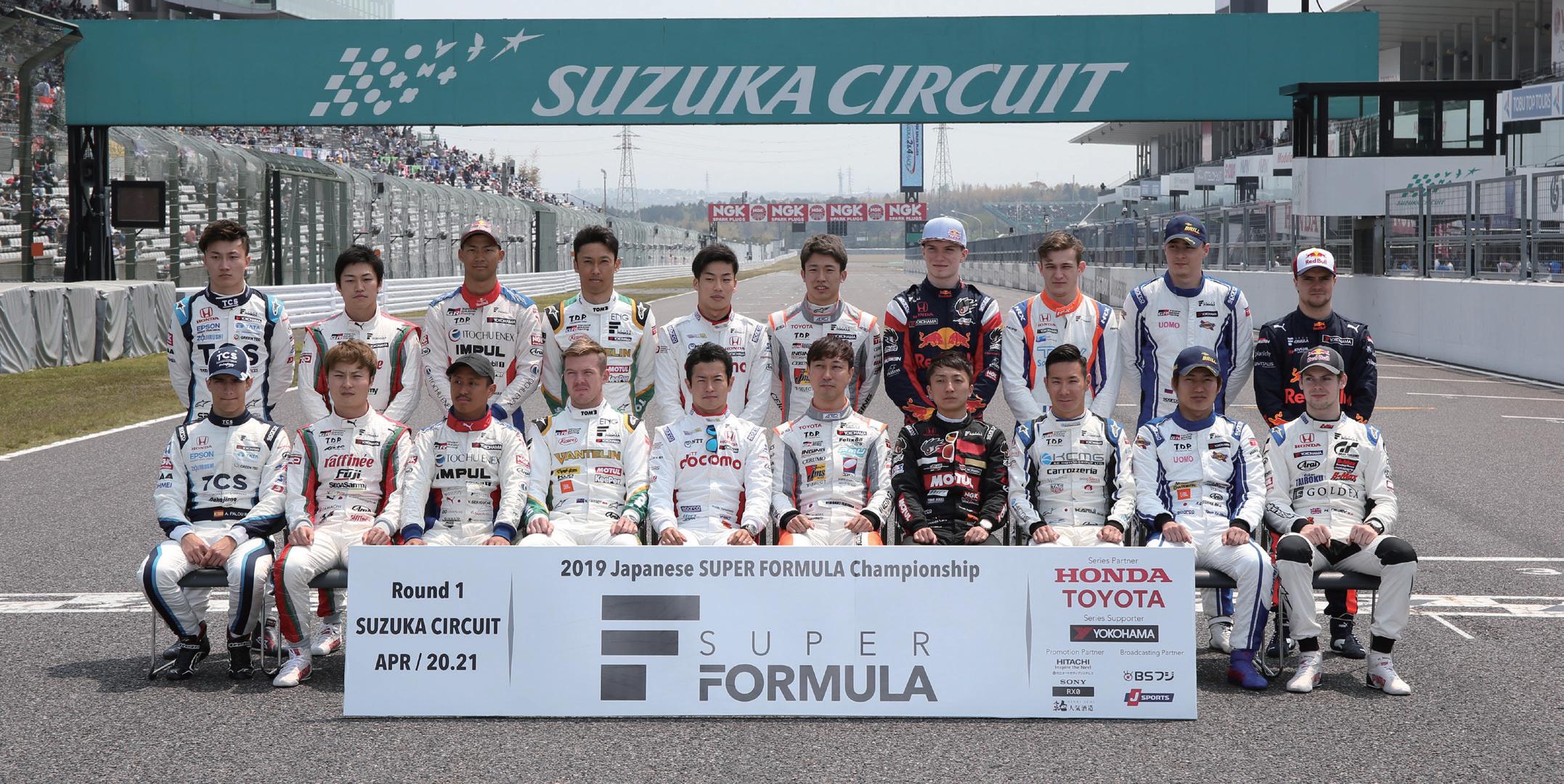 会は、今年から併催される全日本スーパーフォーミュ ラ・ライツ選手権とともに延期されている。 3月下旬の合同テストの後、次はいつ走行の機会が 得られるだろうか。コースや車両の習熟がまだできて いないルーキーたちには辛い滑り出しとなるだろう。 だが、その中でもキラリと光るものを見せるドライ バーはいるはずだ。初優勝者が誕生することが多いス ポーツランドSUGOといったコースもあるため、各地 で誰が速さを見せるのかは今年も混迷を極めるだろう。 世界の大部分が時を止めている状況だが、ドライバ ーたちにはまず“走れる喜び”、“レースができる豊か さ”を感じながら、コースに出ていただきたい。 2019年のスーパーフォーミュラ開幕戦鈴鹿で撮影された集合写真。2020年の開幕が待たれる。 2019年全日本F3チャンピオン、サッシャ・フェネストラズ選手。 全日本F3の大湯都史樹選手は牧野任祐選手のチームメイトに抜擢。 今季からスタートする全日本スーパーフォーミュ ラ・ライツ選手権には、昨年までFIA-F3を戦った 名取鉄平選手が参戦予定。 ※この記事は3月31日までの情報を元にしております。 20