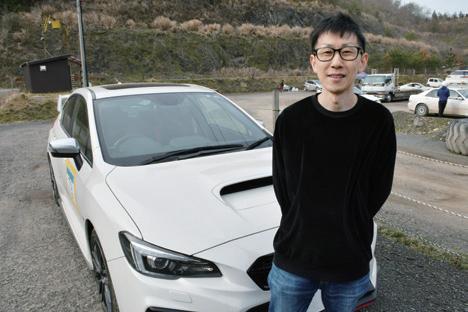 今庄のHPでコースの写真 を見て、こういう所が走れ るんなら、と興味を持ちま した」と話してくれたのは 現行のスバルWRXで参加 した三中淳史選手だ。 残念ながら今回は前日の 雨で当初予定されていた本 コースの路面が悪化したため、急遽、全日 本ダートラの際にパドックとして使われる 砂利の広場がコースとなったが、「正直、サ イズ的には自分のクルマにはツラいコース でしたが、2本目は楽しく走れました」と振 り返った。「自分のクルマには色んな機能が ついてますけど、試す場がないんですよね。 実は氷上トライアルも申し込んでたんです けど、雪不足で中止になってしまって。こ