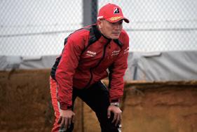 ムカーナ競技において、コース以外でできる効果的な トレーニングってあまりないと思ってます。少なくとも 自分はシーズン中もシーズンオフもやっていません」と 語る。 斉藤選手によれば「イメージトレーニングも、シミュ レーターを使用したものなら効果的だと思いますが、 ジムカーナは特殊だから専用のシステムがないし、動 画や雑誌でトライビングテクニックの知識を学んでも、 コースで走らないことには身につかないと思います。 確かにジムカーナはハンドブレーキを思いっきり引く