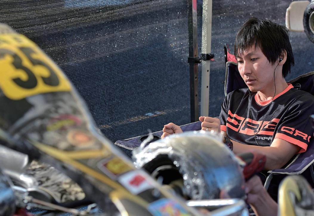 さらに上野選手は「タイヤのエア圧とダンパーの減衰 力は走行ごとに変更してますし、ドライビングでアプ ローチを変えることもあります。でも、公開練習でイ メージが掴めなければ、日曜の決勝第1ヒートでガラ リとセットアップを変えることもあります。特に車高は 顕著に動きが変わるので、どうしてもセッティングが 決まらない時は、ギャンブル的に車高を変えることも
