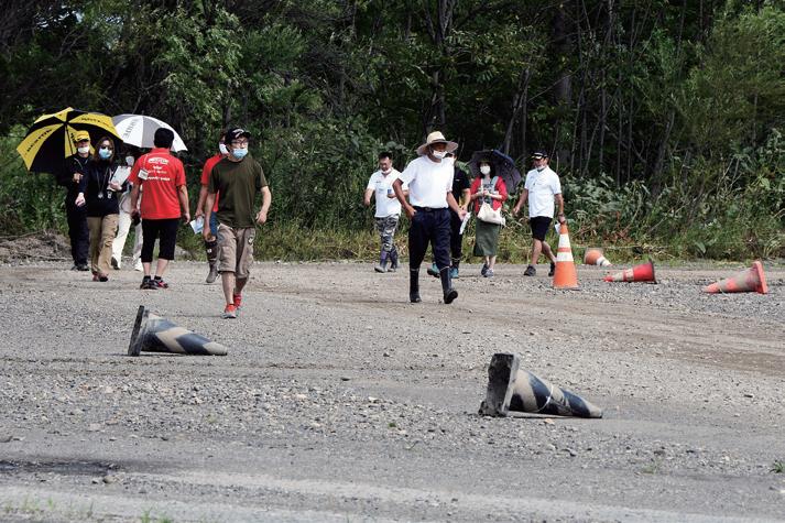リピートステージで逆転できる 理想的な路面コンディション ちなみに、例年のラリー北海道ではFIAアジア・パ シフィックラリー選手権(APRC)が併催されており、 全日本ラリー選手権の前にFIA R5車両などが走行して いる。このテンロクターボの4WDマシンについては、 「R5車両はラインがまったく違いますからね。全日本ラ リーのエントラントが走らないところが掘れていたりす るので、注意が必要です」と大倉選手は語る。 海外ラリーではコースの「インカット」は当たり前で、 北海道で開催されたラリージャパンでは、WRカーが駆 け抜けたラインが「イン側のさらにイン」という想像を絶 する場所を走っていた、という話はよく聞かれたもの だ。今回のラリー北海道では、新型コロナウイルス感 染症の影響で海外からの入国制限があり、APRC併催や R5車両の出走がなかったため、最も速い車両はいわゆ るグループNベースの4駆ターボ勢だった。