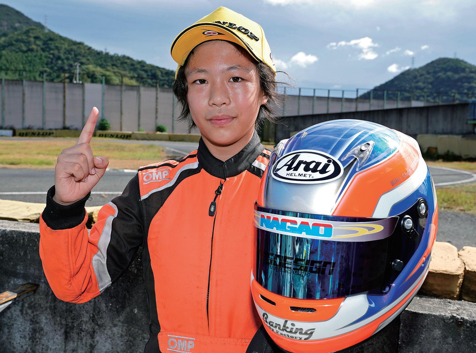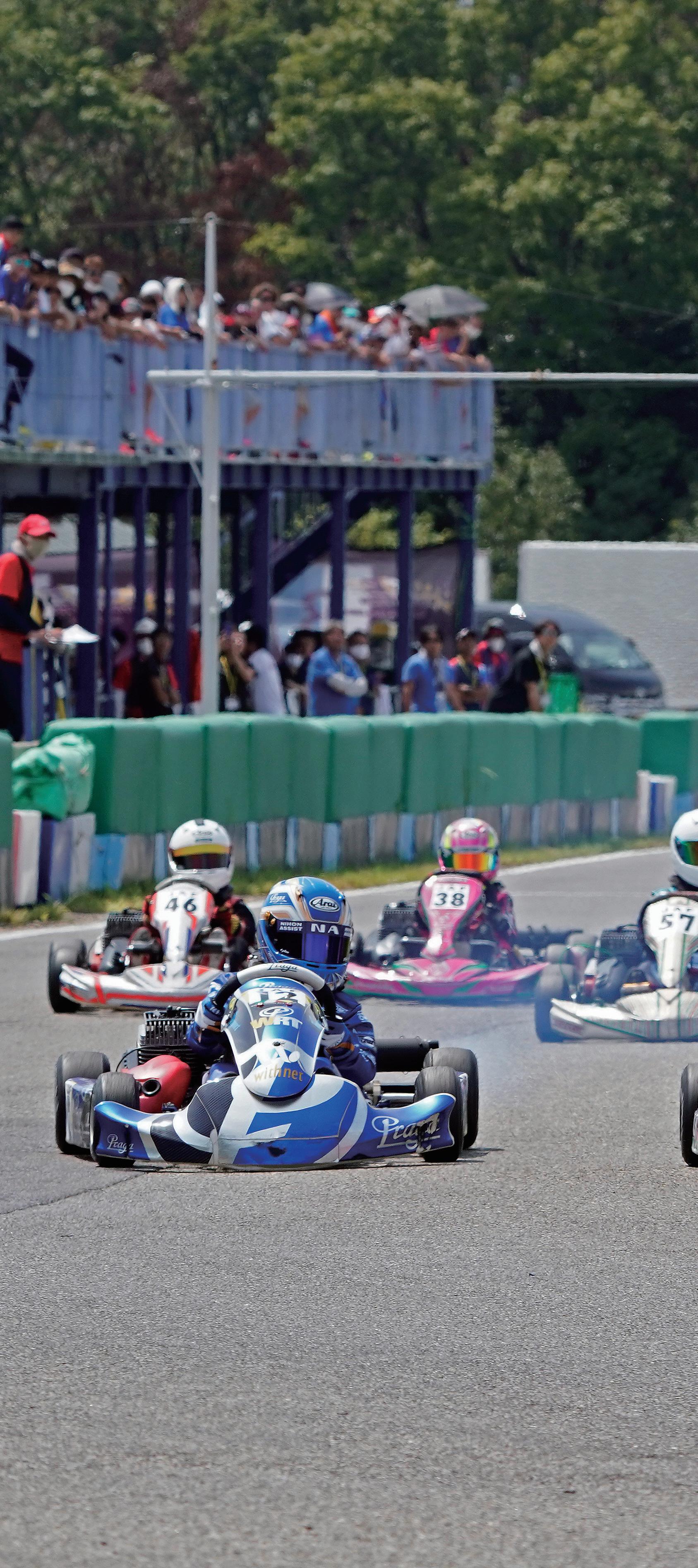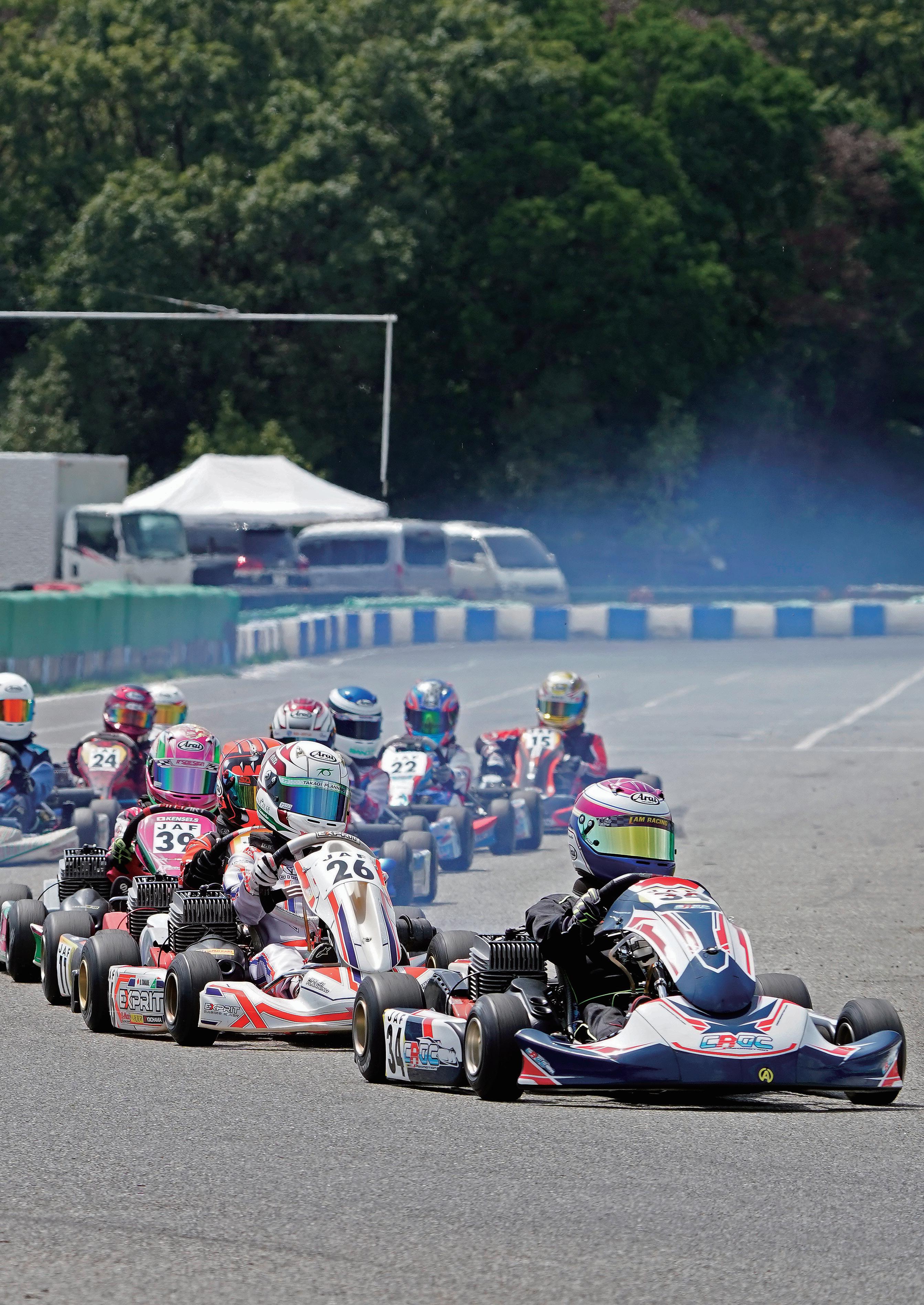 そんな佐藤選手の意識に、やがて変化が 訪れる。 「最初は後ろの方でも楽しかったけれど、 だんだん悔しくなってきて、それからいっ ぱい練習するようになりました」。 腕を磨いた佐藤選手は2018年、ジュニ アカート選手権・西地域第5戦のFP-Jr Cadets部門にスポット参戦。タイムトラ イアルも予選も1位、決勝2位という見事 な結果でデビューレースを終えたのだが、 佐藤選手は「3番グリッドの子が速くて抜か れちゃって、めっちゃ悔しかった」と、この