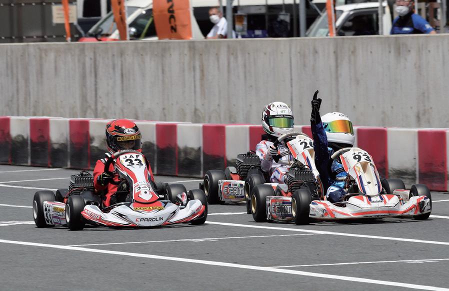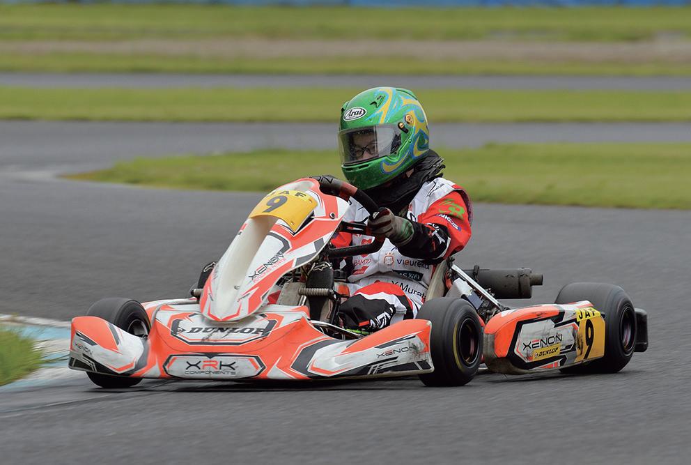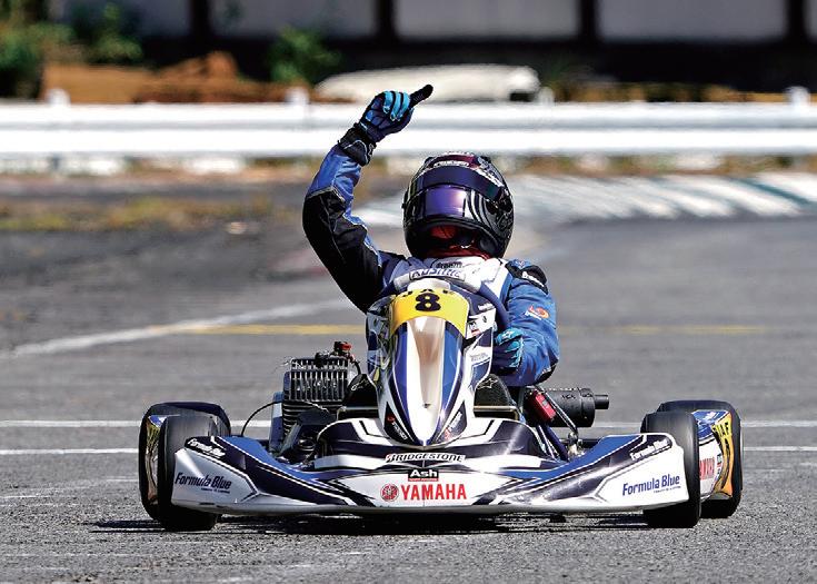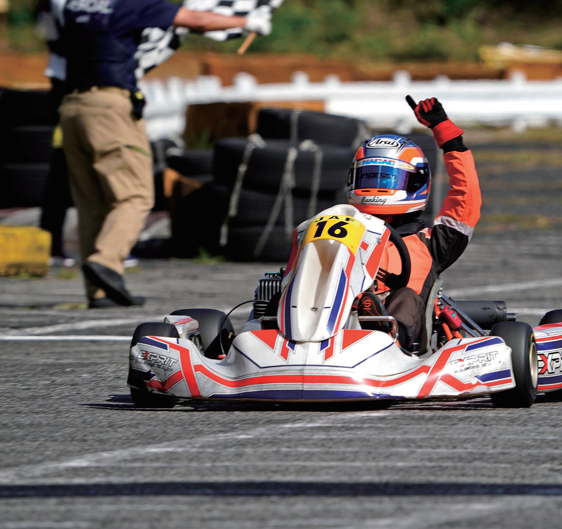 そんな佐藤選手の意識に、やがて変化が 訪れる。 「最初は後ろの方でも楽しかったけれど、 だんだん悔しくなってきて、それからいっ ぱい練習するようになりました」。 腕を磨いた佐藤選手は2018年、ジュニ アカート選手権・西地域第5戦のFP-Jr Cadets部門にスポット参戦。タイムトラ イアルも予選も1位、決勝2位という見事 な結果でデビューレースを終えたのだが、 佐藤選手は「3番グリッドの子が速くて抜か れちゃって、めっちゃ悔しかった」と、この