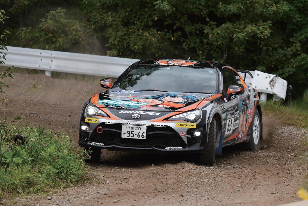 ではワダチに合わせたドライビングが必要不可欠とな る。しかし、その中間辺りを走るJN3クラスは、トヨ タ86やスバルBRZなどの後輪駆動車で争われること もあり、また違った対応が必要となっているようだ。 前輪駆動とは違うコーナリング 後輪駆動はアクセル操作が肝要 このJN3クラスは、全日本ラリー選手権では前半か