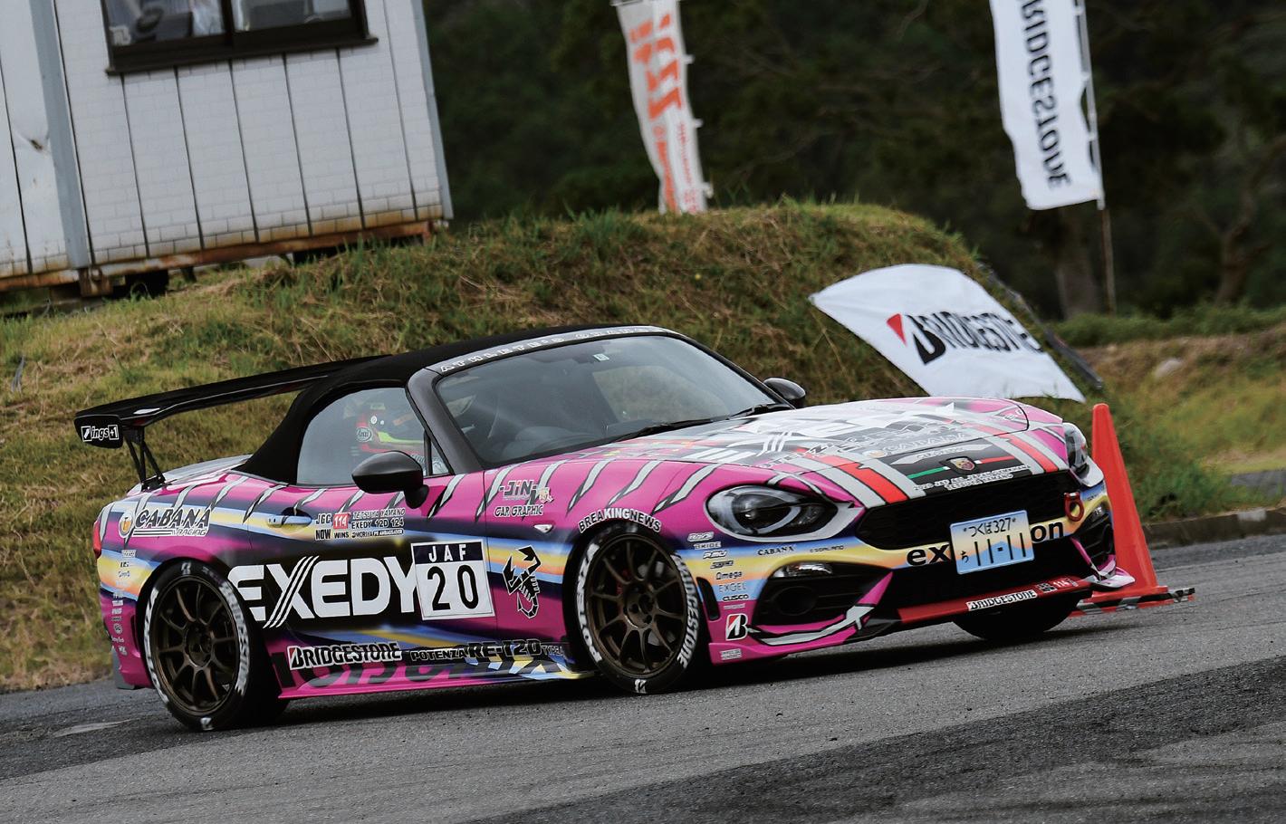 もらうと分かりやすいかも知れない。これで、カウン ターステアを前提としたコーナリングを目指すのだ。 しかし、ステアリングが切れすぎると、カウンター ステア時に抵抗となったり、真横を向いたクルマは減 速していくため、前に出すにはそれを上回るパワーが 必要となる。グリップ力の高いタイヤを履き、クルマ を無理やり前に押し出す走りと言えばいいだろうか。 大きな切れ角を有し、しかも車速を食われないため に必要なのは「ハイパワー」。これらがマッチしたとき に初めて、ドリフトマシンは想像を絶するスピードで、 フルカウンターでコーナリングしていけるのだ。 パワーとトラクションを必要とするもう一つの理由 は、ドリフト“競技”の特徴でもある「追走」だ。 「先行」と「後追い」が2台同時にスタートし、後追いが 如何に先行に接近するかを審査する競技スタイルは(入 れ替えて2本走行する)、スタートダッシュも勝敗を決 める大きな要素となる。そのため、ドリフト車両に求 められるセッティングは、今ではドラッグレ―スのサ スセッティングに近付いてきている。 求めるのは効率ではなく、無駄の美学。矛盾の中の 正義。それがドリフト車両の進化の原動力であり、そ れを求める行為がドリフトの真骨頂なのだ。 リアデフにLSDが入った後輪駆動車なら、とりあえずのドリフトは楽しめる。 しかし、技術を高めれば「もっと速く」「もっと角度をつけて」と欲が出ててくるし、 ウデ試しもしたくなる、そして他の選手と競うイベントにも出場したくなる。 そんな、モータースポーツカテゴリーとして世界で認められたドリフト競技では、 今や1000馬力を超えるパフォーマンスが必要とされているというが……。 フォト/SKILLD川﨑隆介、D1コーポレーション レポート/SKILLD川﨑隆介、JAFスポーツ編集部 ドリフトは1000馬力時代に D1グランプリ第2戦エビスサーキットのベスト 16決勝前のセレモニー。単走予選を通過した 車両は3000cc以上のエンジンを搭載し、800 馬力~ 1000馬力、トップグループは1000馬力 を超え、トルクは100キロに達するとも。 53